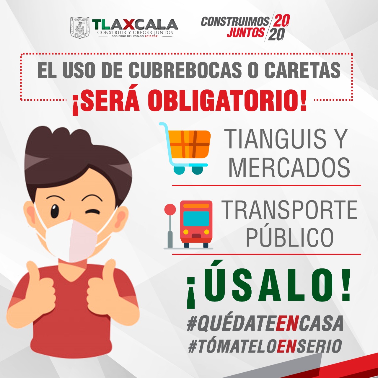 Gobierno de Tlaxcala on Twitter: "📍#TómateloEnSerio Uso obligatorio de cubrebocas o caretas en tianguis, mercados, espacios y transporte público. #QuédateEnCasa 🏠… https://t.co/WOnT8pehbv"