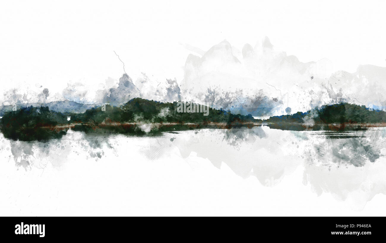 Abstract colorful Mountain hill and river lake watercolor painting background Stock Photo - Alamy